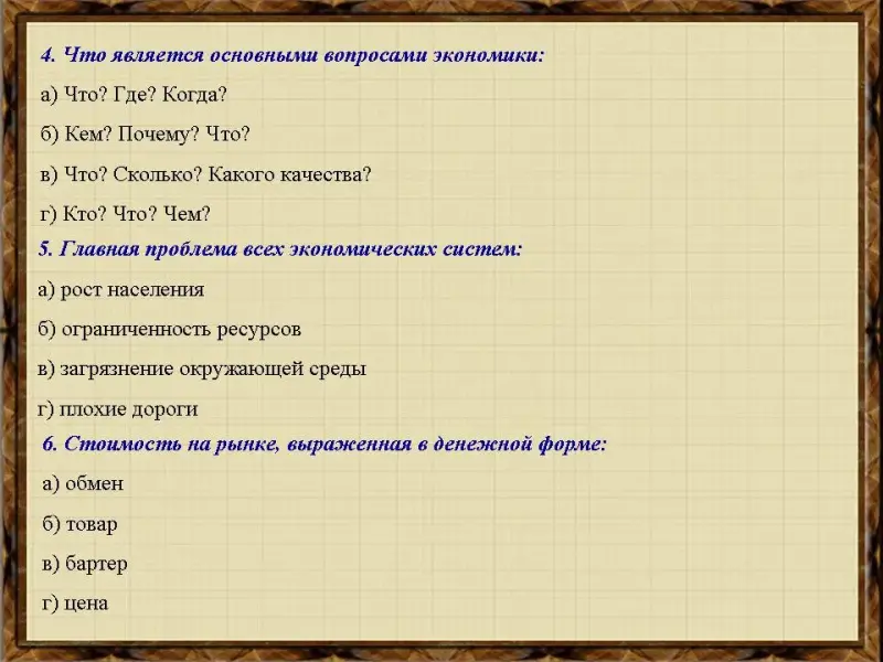 | 4. Что является основными вопросами экономики: