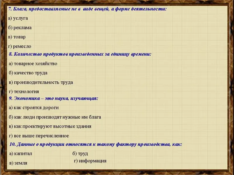 а) капитал б) труд в) земля г) информация |