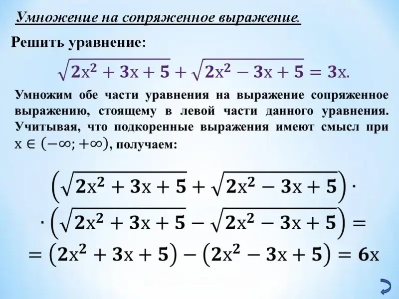 3.4.3. Умножение на сопряженное выражение. (Слайды 25-27)