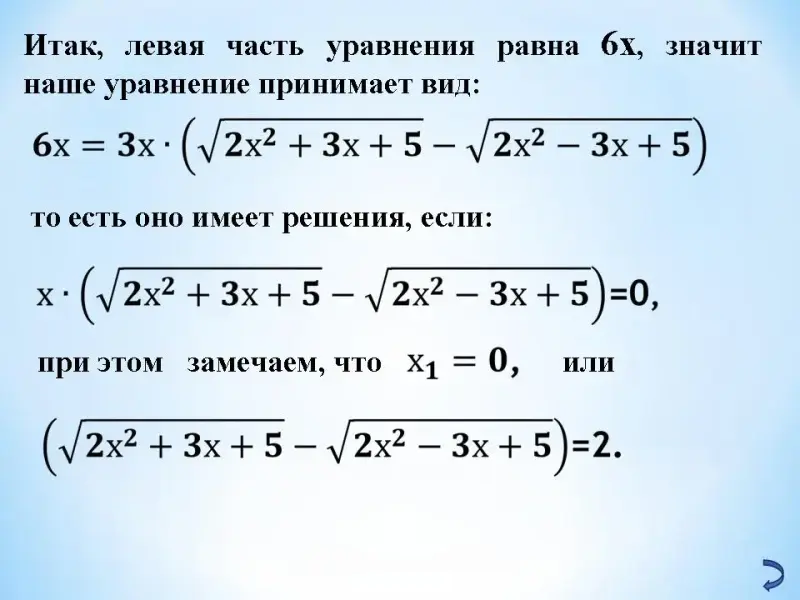 3.4.6. Искусственные приемы решения иррациональных уравнений. (Слайд 33-35)