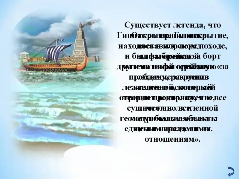 Существует легенда, что Гиппас совершил открытие, находясь в морском походе, и был выброшен за борт другими пифагорейцами "за создание элемента вселенной, который отрицает доктрину, что все сущности во вселенной могут быть сведены к целым числам и их отношениям".