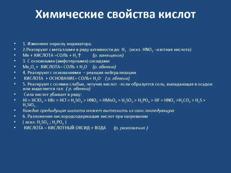 - Повторение, углубление и закрепление знаний учащихся о свойствах кислотных оксидов и кислот.