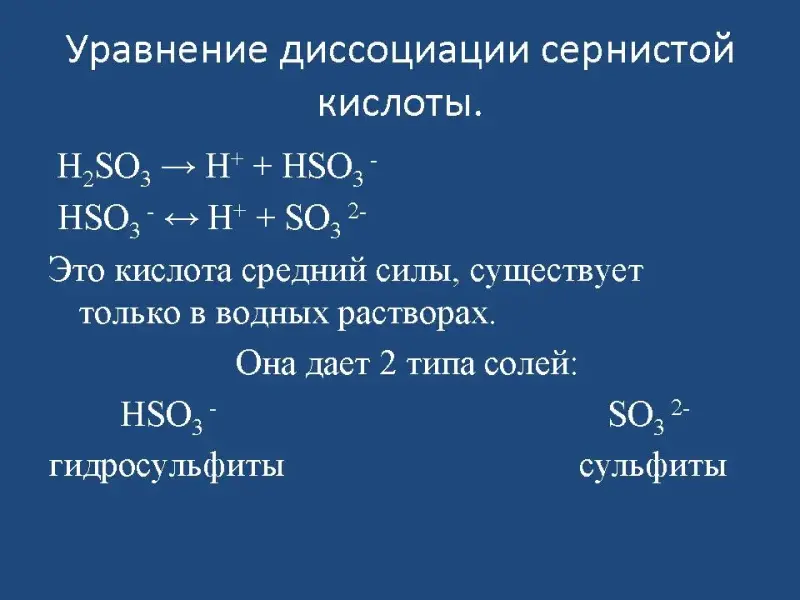 Задание: Составьте уравнение диссоциации сернистой кислоты.