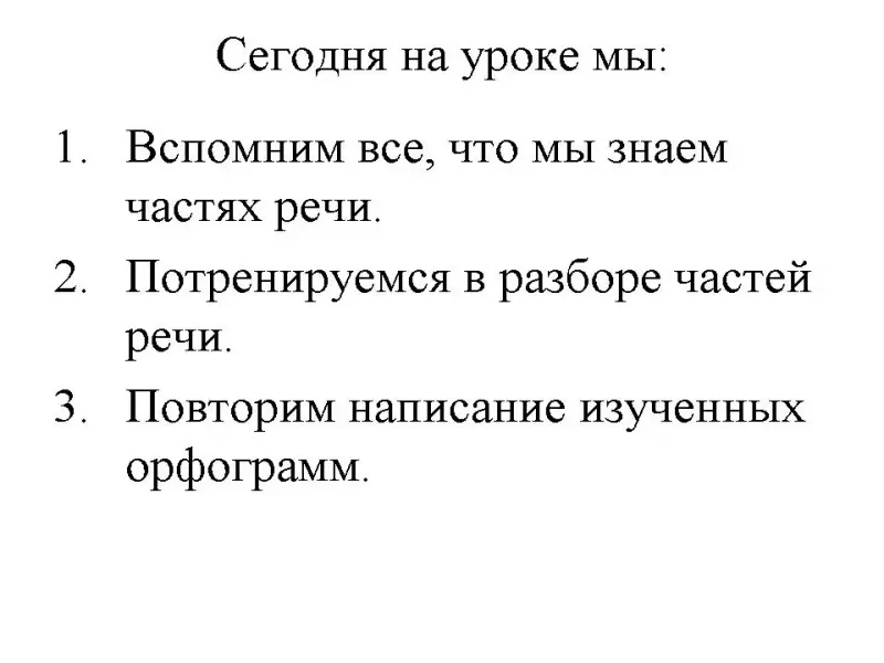 - Как называется сценка? - Как вы думаете, о чем сегодня мы будем говорить на уроке? - Тема нашего урока "Какие части речи тебе знакомы". План урока. - Сегодня на уроке мы: