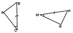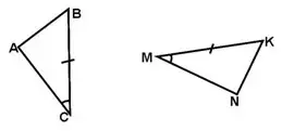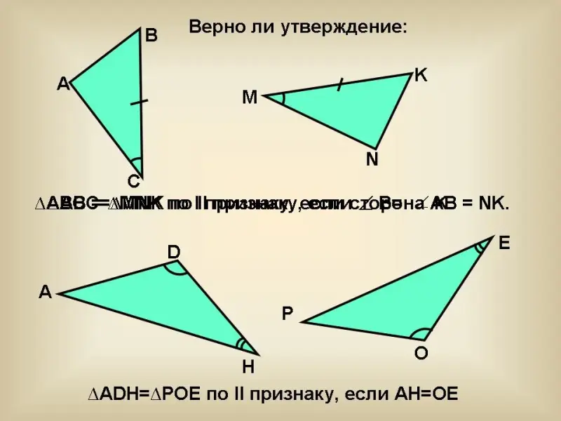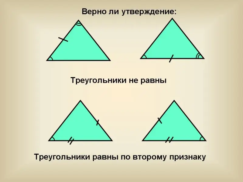 - Если две стороны и угол одного треугольника соответственно равны двум сторонам и углу другого треугольника, то такие треугольники равны. (Нет)