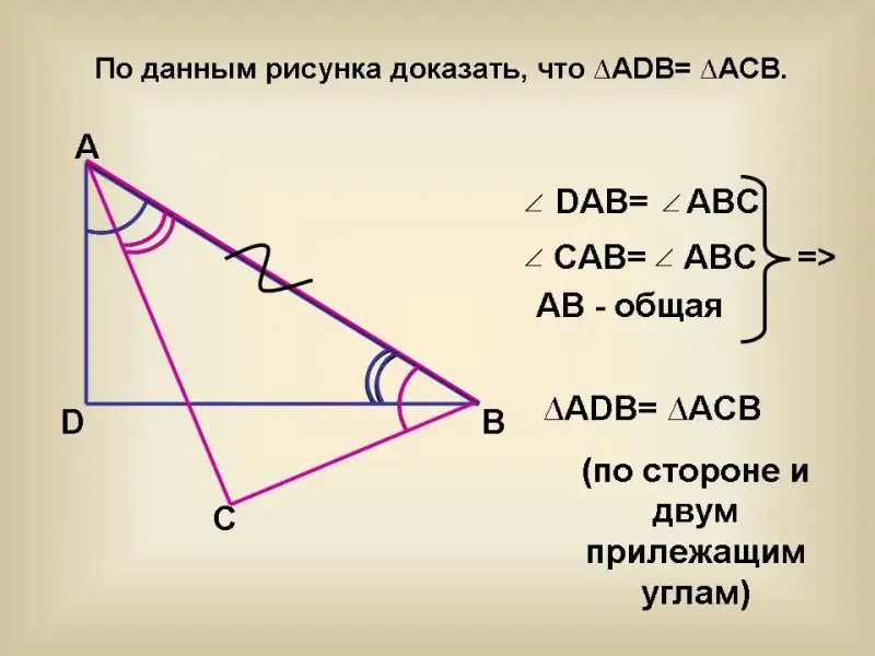- Если сторона и два прилежащих к ней угла одного треугольника соответственно равны стороне и двум прилежащим к ней углам другого треугольника, то такие треугольники равны. (Да)