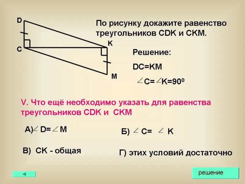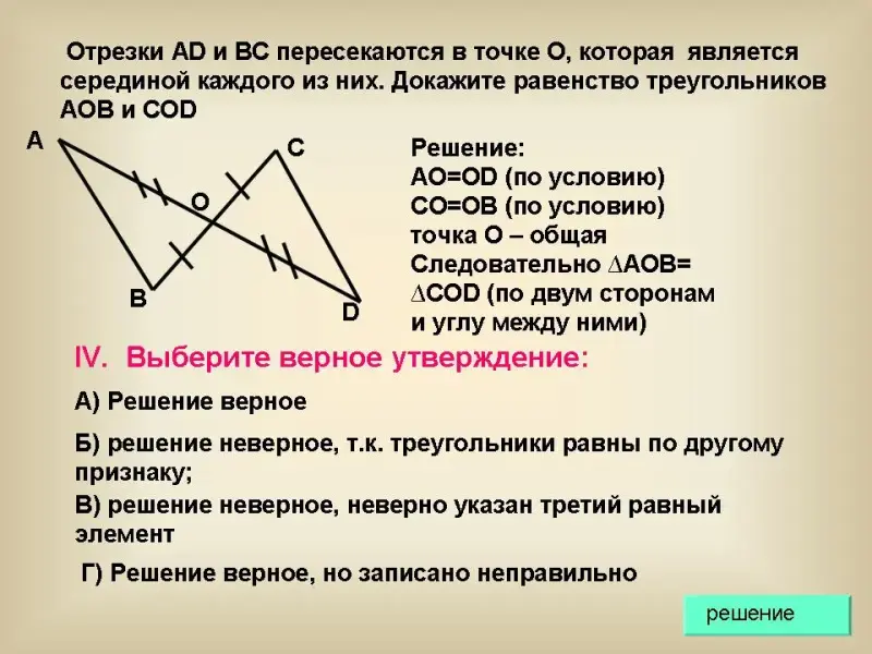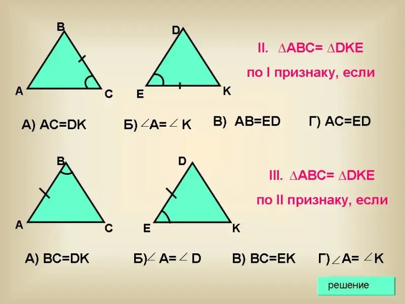 - Треугольники равны по второму признаку. (Нет) (Слайд 2)