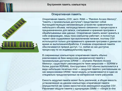 Устройства ввода и вывода информации. Оперативная память. Долговременная память