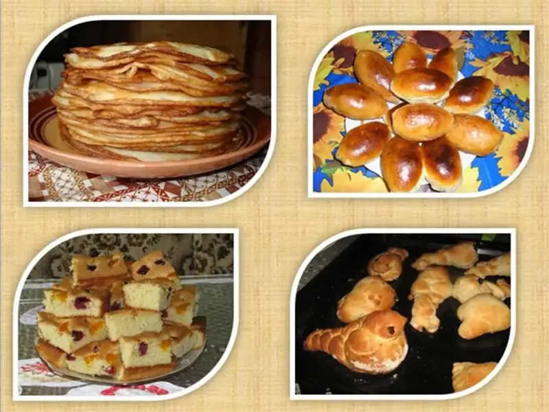 Слайд 68. А еще мы печем пироги, ватрушки, пончики и торты. А на Масленицу по традиции выпекаем Жаворонков. А сейчас я хочу вас научить делать этих птичек. Неспроста говорят, что в каждом творении рук человека есть частичка его души. Так и подарите нам частичку своей души (раздает тесто, гости и одноклассники лепят жаворонков)