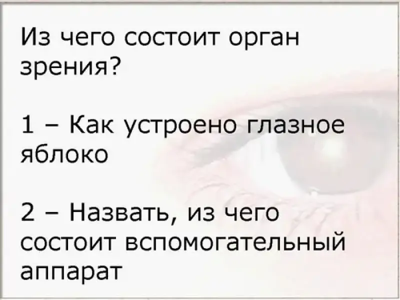- сформировать знания о строении и функционировании органа зрения и зрительного анализатора.