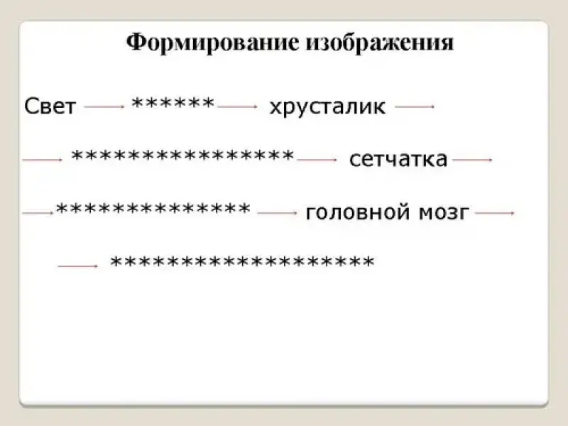 Свет зрачок хрусталик стекловидное тело сетчатка зрительный нерв головной мозг представление о предмете