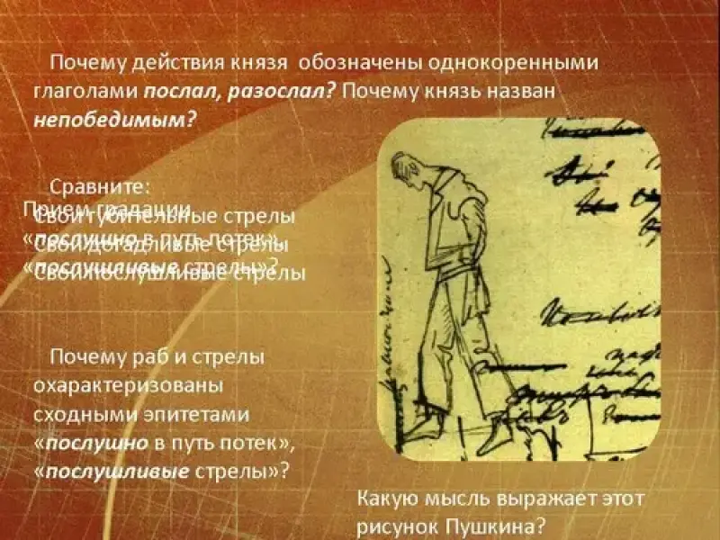 - Обратите внимание на фигуру раба, нарисованного пером поэта. Случайно ли она появилась в черновике? Почему Пушкин, например, не нарисовал царя?