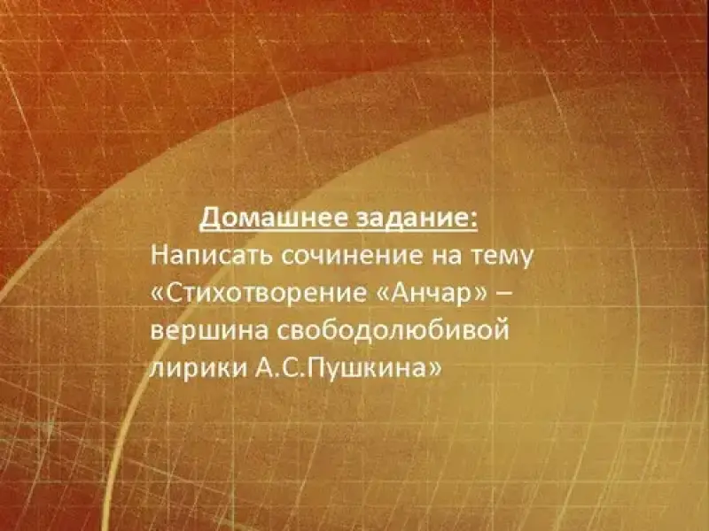 Домашнее задание: написать сочинение на тему "Стихотворение "Анчар" - вершина свободолюбивой лирики А.С.Пушкина"