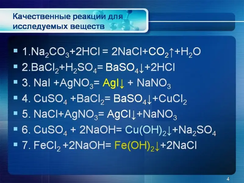 На доске учащимися записаны уравнения качественных реакций: