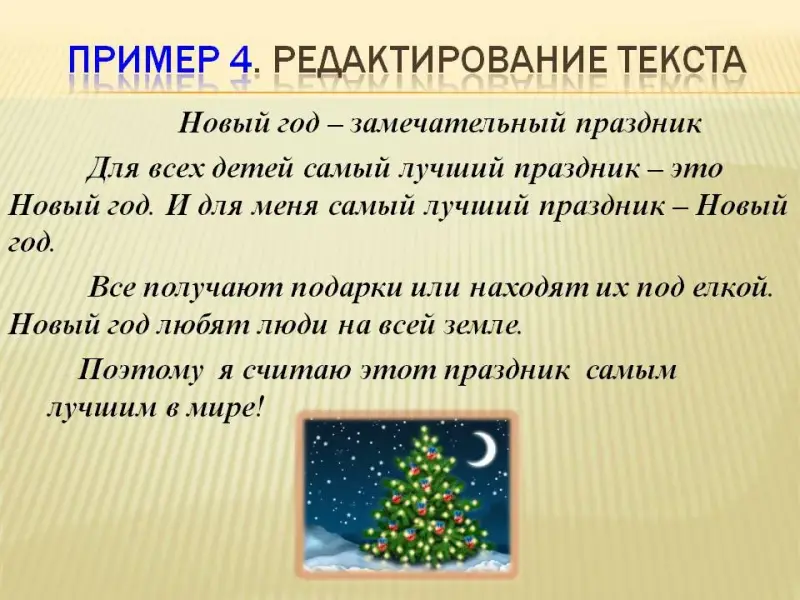 8. Разбор примера 4 - редактирование текста-рассуждения (слайд 12).