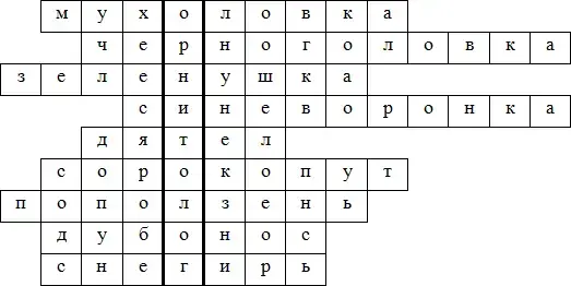 Нам нужно разгадать кроссворд, в нем зашифрованы названия птиц.