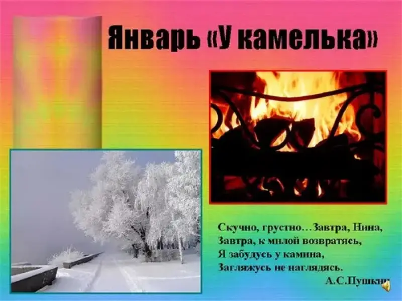 Первой пьесе альбома П. И. Чайковский дал ещё одно название "У камелька". "Камелёк" - уютное, ласковое слово. Слушаешь неторопливое звучание мелодии и видишь перед собой огонь, угасающий в камине или в печке, чувствуешь, как тепло от горячих углей разливается по комнате. Тепло, уютно, тихо. В комнате полутемно, вечереет. Музыка "Января" вначале спокойная, неторопливая. Похоже, что ласковый негромкий голос рассказывает о чём-то. А может быть, просто мечтает человек, сидя у затухающего камина. Но вот рояль зазвучал тревожно и таинственно.