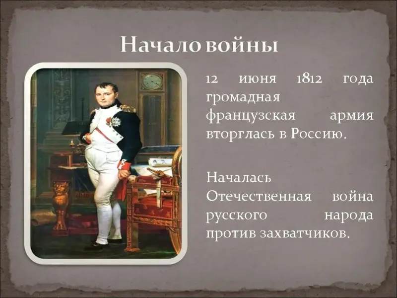 В конце XVIII века в Европе постоянно шли войны. В это время во Франции взял власть в свои руки талантливый полководец Наполеон Бонапарт. Захватив почти все европейские столицы, Наполеон мечтал о Москве.