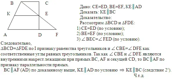 На рисунке учебника СЕ = ED, ВЕ = EF и КЕ = AD. Докажите, что КЕ || ВС.