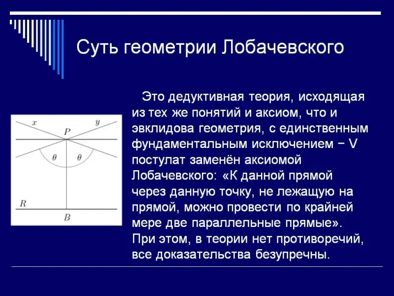 Этот вопрос имеет большую историю. В «Началах» Евклида содержится пятый постулат: «И если прямая, падающая на две прямые, образуют внутренние и по одну сторону углы, меньше двух прямых, то