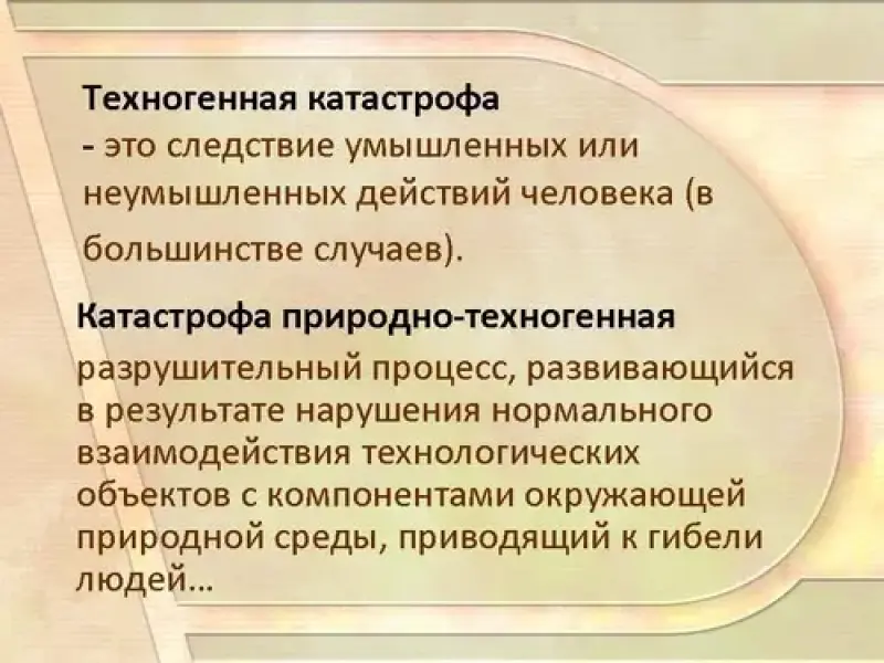 1) Техногенная катастрофа - это следствие умышленных или неумышленных действий человека (в большинстве случаев).