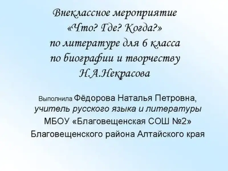 Игра "Что? Где?Когда?" по биографии и творчеству Н.А. Некрасова