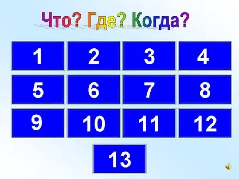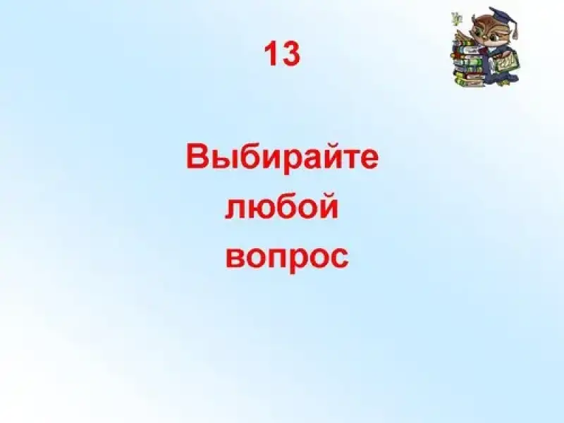 Объяснение правил игры. Команда крутит волчок, стрелка показывает номер конверта, вопрос появляется на экране, на обсуждение даётся минута, капитан решает, кому отвечать.