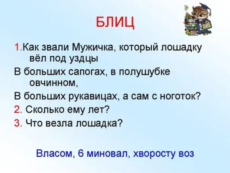 3. 1.Как звали Мужичка, который лошадку вёл под уздцы