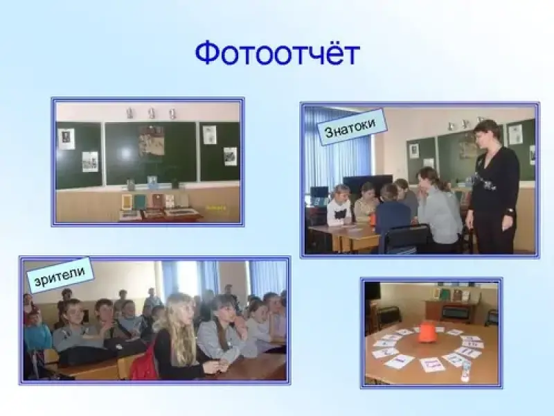 Вопросы знатокам задавали учителя русского языка и литературы, классные руководители, библиотекарь, учащиеся школы, их фотографии также можно поместить на слайды.