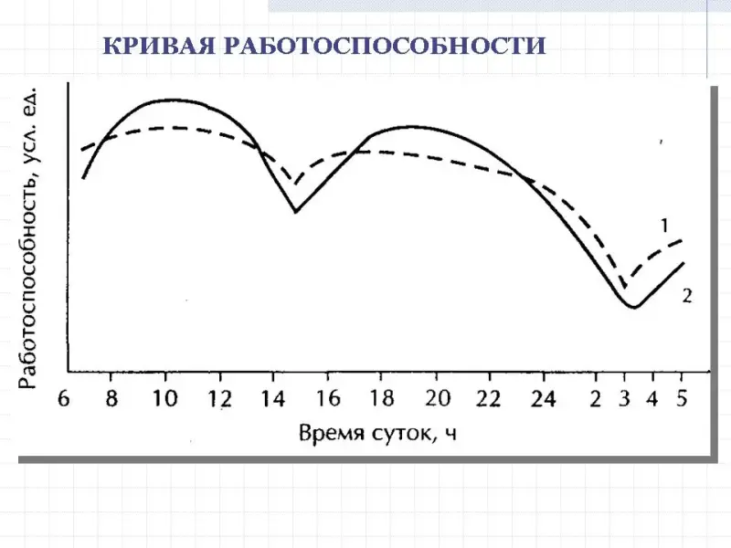 Меньшее из них 10 - является временем наибольшей работоспособности, а большее из них - 14- временем наибольшего утомления.