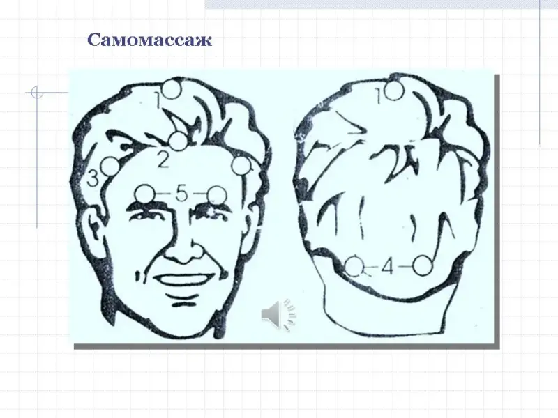 Массаж делается таким образом: 9-10 круговых движений в одну сторону в обозначенной точке, затем 9-10 - в другую. Сила давления - 5-6 кг. Чем больше давление, тем более активна ожидаемая реакция. Минимальное давление носит обычно профилактический характер, максимальное - лечебный.