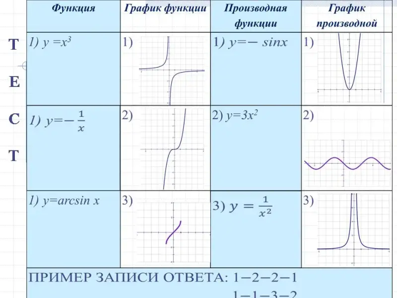 Выучить таблицу производных. Вычислить производные (см. карточки)