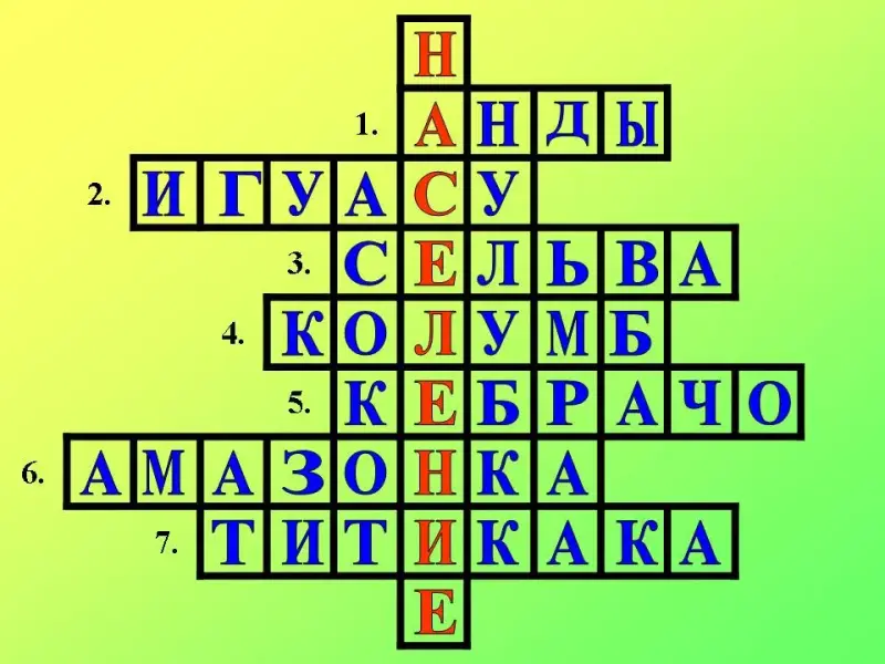 - Анды - Игуасу - сельва - Колумб - кебрачо - Амазонка - Титикака |
