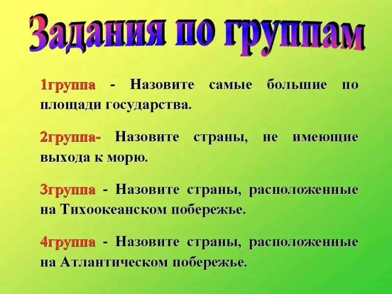 Здравствуйте! Сегодня мы с вами совершим путешествие в Южную Америку. Ребята, а как мы с вами доберёмся до материка? - Почему? - Какой? Итак, наша дорога длинная, нам очень много надо успеть и поэтому без промедления оправляемся в путь. Для успешной работы вы разделились на группы, которые в течение урока будут выполнять различные задания. Ваша задача работать быстро и набрать как можно больше баллов. За каждый правильный ответ команда получает 1 жетон. Итак, в путь! |