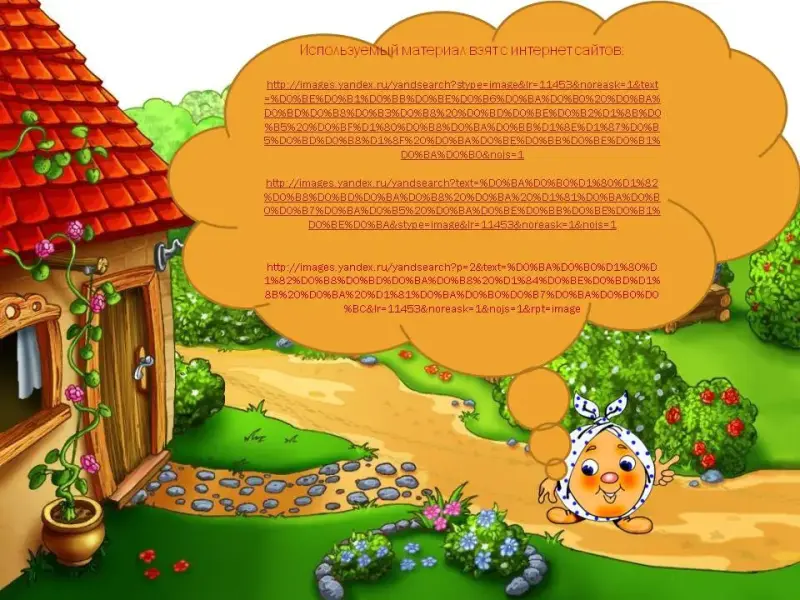 А вот и Колобок - Колобок румяный бок! А скажите, от кого ушёл колобок? (Дедушки, бабушки) Слайд 3 Покатился наш колобок по дорожке Слайд 4 Давайте и мы за ним побежим и посмотрим, что же дальше с Колобком произойдёт.