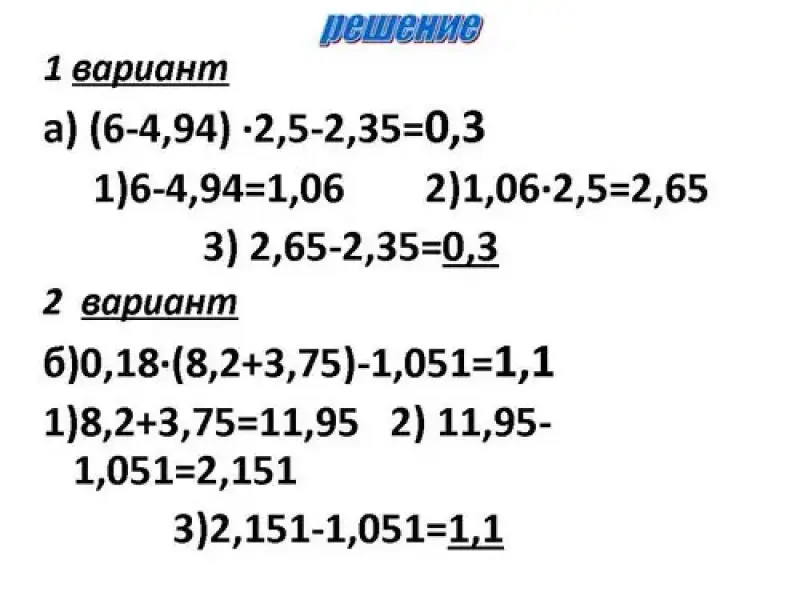 - 1 вариант а) (6-4,94) * 2,5-2,35=1,06 * 2,5-2,35=2,65-2,35=0,3