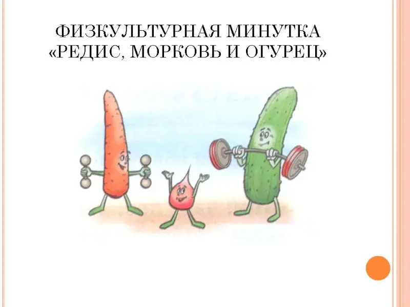 Логопед: Сейчас немного отдохнем и сделаем упражнения вместе с друзьями Лисы и Зайца, Редиской, Морковкой и Огурцом. Слайд 9