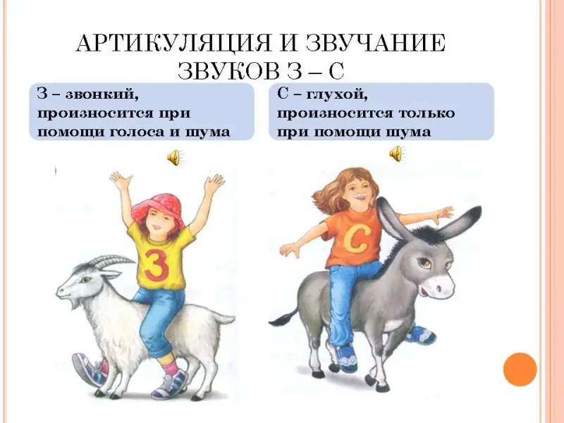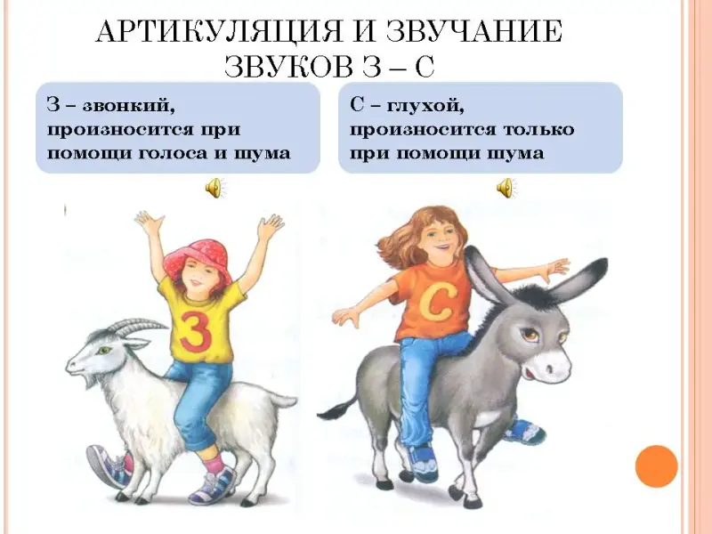 Задание №2: Объяснение характерных признаков звонких - глухих звуков З - С (артикуляция и звучание звуков З - С)