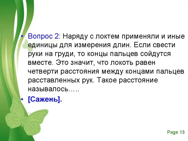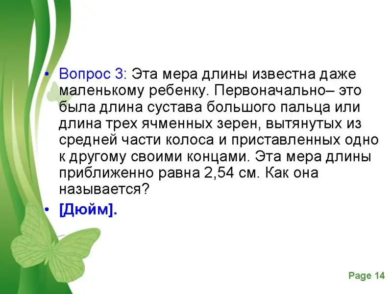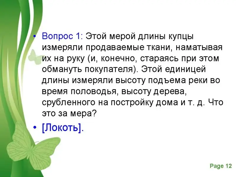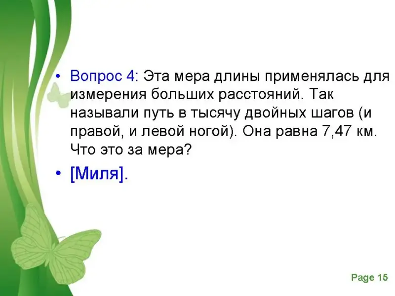 А теперь вопросы про старинные меры длины.