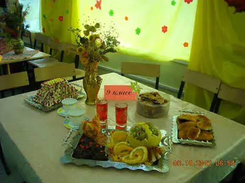 1 вед:А так как к нашей встрече мы все тщательно готовились, каждая классная компания сидит за красивым столиком,с великолепными осенними композициями и с удовольствием предвкушает миг, когда ароматные блюда будут продегустированы как гостями, так и членами жюри.