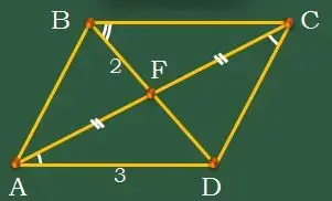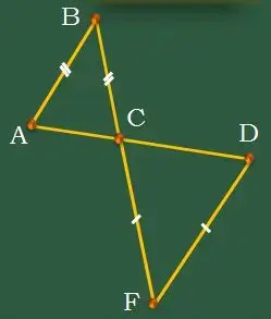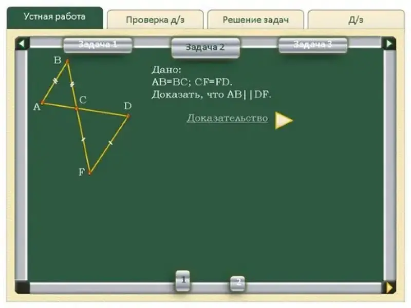 2. Дано: AB=BC; CF=FD. Доказать, что AB || DF (см. слайды Устная работа - Задача 2). |