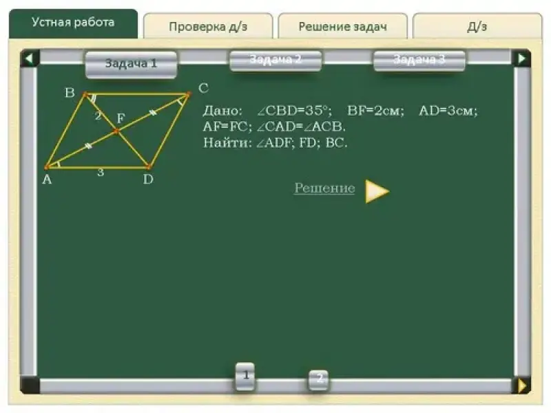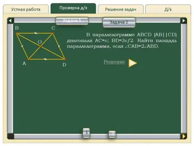 - свойства и признаки параллелограмма;
