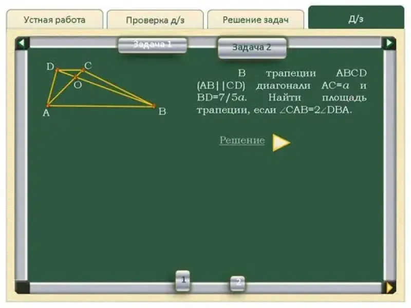 2. В трапеции ABCD (AB || CD) диагонали AC=a и BD=7/5a. Найти площадь трапеции, если |