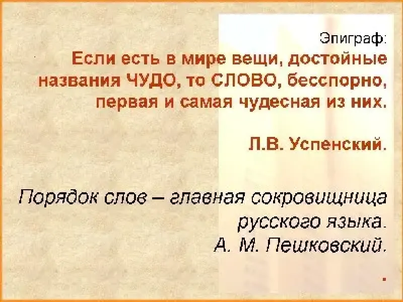 Порядок слов - главная сокровищница русского языка. (А. М. Пешковский)