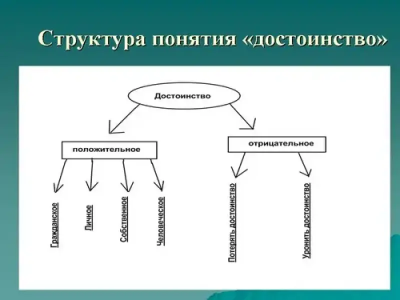 Разберемся, что же включает в себя понятие "достоинство". Очевидно, что и оно тоже неоднозначно. Когда мы говорим о достоинстве человека, то уместнее всего рассматривать следующие его составляющие: