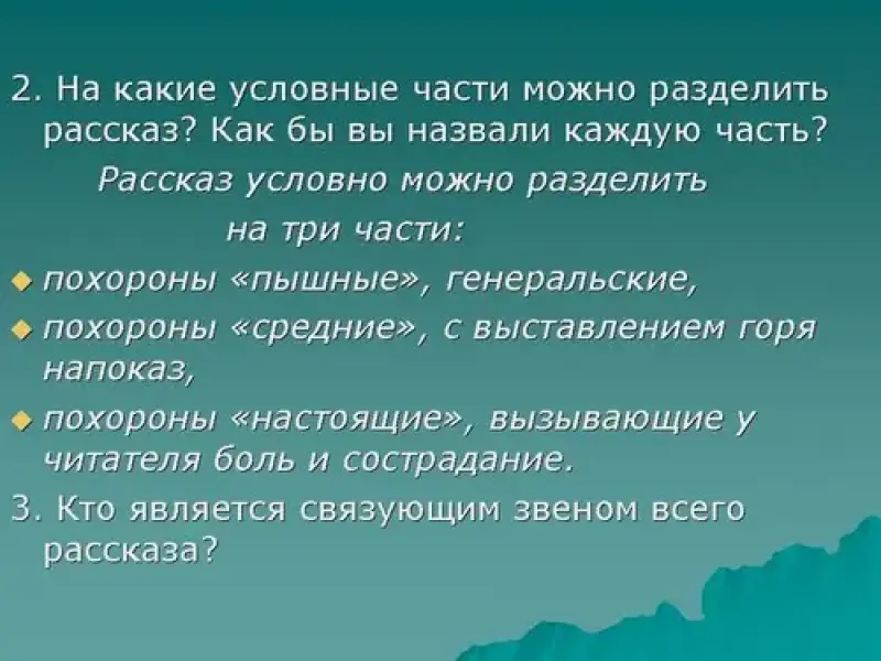 4. Слово учителя. Анализ рассказа "Похороны". Слайд 7.