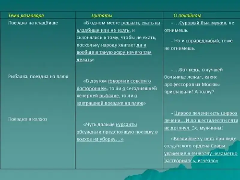 | Тема разговора | Цитаты | О покойном |