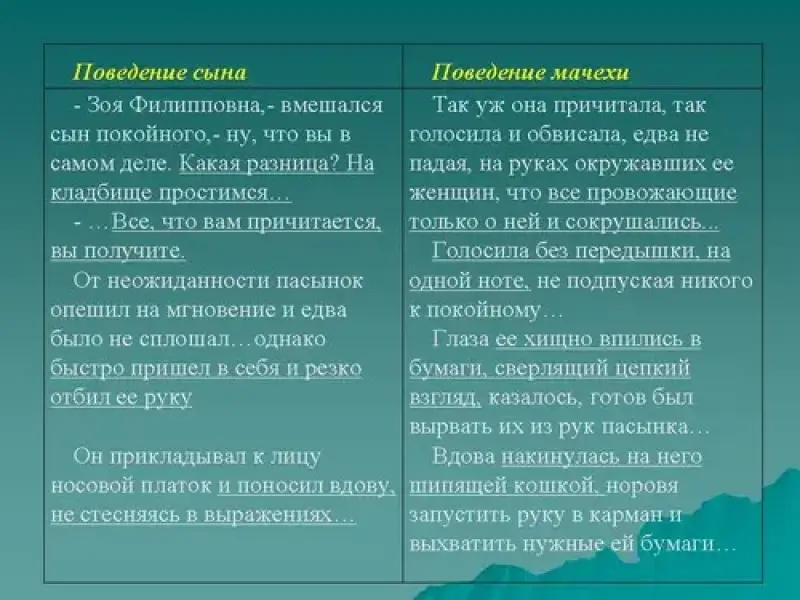 | Поведение сына | Поведение мачехи |