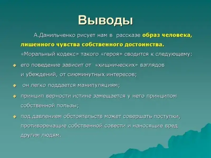 Одним из основных "компонентов" нравственности является, несомненно, "достоинство". В современном мире - это одно из наиболее важных, животрепещущих понятий. Что же такое достоинство? Каким оно бывает? Как должно проявлять себя? Каждого ли человека можно назвать достойным? И наконец, как Анатолий Данильченко говорит нам о достоинстве? Вот на эти вопросы мы и попытаемся ответить на примере анализа его произведений.
