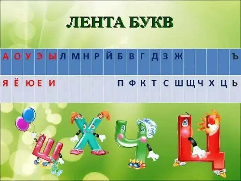 - Посмотрите на ленту букв. На какие группы делятся все звуки и буквы? (На гласные и согласные.)